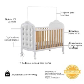 - 1 Berço com Capitonê 120 x 140 x 78,30 (AxLxP - cm) Acompanha Colchão: Não Altura do Conjunto: 120 cm Ambiente: null Ambiente Principal: Quarto de Bebê Cor: Branco Brilho/Amêndoa/Branco Estrado com Regulagem de Altura: Sim Informação Complementar: 1x Kit Capitonê Berço 2 Peças Elô Sintético Branco Largura: 62,8 cm Altura: 78,3 cm Peso: 6,28 kg Profundidade: 4 cm Necessita Montagem: Sim