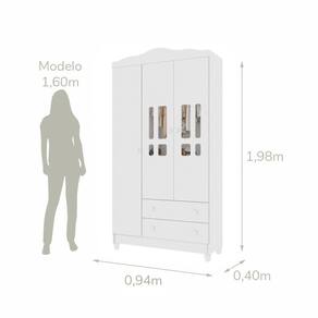 Estilo Marquesa: charme clássico com um toque de sofisticação Acompanha Colchão: Não Acompanha Manual de Instalação: Sim Acompanha Suporte para Mosquiteiro: Sim - Sem Véu Altura do Conjunto: 198 cm Ambiente Principal: Quarto de Bebê Certificado: 009413/2022 Certificado INMETRO (código): 009413/2022 codigo_ean: 7900288256324 Complexidade da Montagem: Baixa: pode ser montado por uma pessoa sozinha Cor: Branco Cor do Produto: Branco Cor Interna: Branco Escala de Brilho: Fosco Estrado com Regulagem de Altura: Sim Estrado Regulável em Quantas Posições: 02 Formato da Janela da Porta: Retângulo Largura do Conjunto: 154 cm Linha ou Coleção: Mirelle Manual de Montagem e Instalação: https://product-hub-prd.madeiramadeira.com.br/855885964/documents/d4515075-def0-4a24-bbfc-a926eb21ae5b325660964017594259514556.pdf Marca: Carolina Baby Material da Gaveta: MDF Material da Porta: MDF Material da Prateleira: MDF Material do Estrado: MDF Material do Fundo: MDF Material Principal: MDF Medida de Cada Item: Berço: 154cm x 76cm x 115cm Guarda Roupa: 94 cm x 40 cm x 198cm modular: Não Necessita Montagem: Sim Origem do Produto: Nacional Peso: Guarda Roupa: 49 Kg, Berço: 38,2 Kg Peso de Cada Item: Guarda Roupa: 48 Kg, Berço: 38 Kg Pintura Atóxica: Sim Porta Janelada: Sim Possui Certificado: Sim Possui Espelhos: Não Possui Gavetas: Sim Possui Grade: Sim Possui Portas: Sim Possui Prateleiras: Sim Possui Rodízio: Sim Profundidade do Conjunto: 76 cm Quantidade de Gavetas: 02 Quantidade de Prateleiras: 03 Recomendações de Uso, Manutenção e Limpeza: Limpar com pano seco Sistema de Montagem: Parafuso Tamanho do Colchão Indicado (L x C): 70 x 130 cm Tipo de Corrediça da Gaveta: Metálica Telescópica Tipo de Dobradiça/Corrediça da Porta: Metálica Tipo de Estrado: Fixo Tipo de Grade: Fixa Tipo de Guarda-Roupa: Infantil