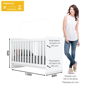 Quarto de Bebê Berço Mini Cama com Cômoda Sonho Encantado Espresso Móveis Branco. O Conjunto Sonho Encantado é composto por 1 Berço Mini Cama aconchegante e encantador, desenvolvido com um formato otimizado visando à comodidade e o aconchego para o seu bebê. Produzido em MDP, com medidas de 870 mm de altura, 1.325mm de largura e 660 mm de profundidade, ideal para colchão de 1,30 x 0,60m, ele conta também com uma bela Cômoda que com medidas de 800mm de Altura, 650mm de Largura e 410mm de Profundidade. Ean: 7909903084250