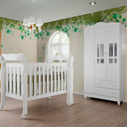 O quarto perfeito para acolher o bebê. Nossos móveis são feitos de madeira resistente e são feitos para durar por muito tempo. O berço americano é perfeito para combinar com a decoração e deixar o quarto do seu bebê mais bonito. Um móvel 3 em 1 para usar como cama e sofá. O guarda-roupa em acrílico vem com cabideiro, prateleiras e gavetas metálicas.