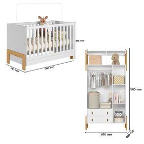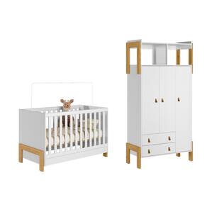 Quarto de Bebê Berço mini cama Guarda-Roupa 3 portas 2 Gavetas Fantasia Qmovi Quarto de Bebê Fantasia com Berço Mini Cama e Guarda-Roupa 3 Portas - Qmovi Transforme o ambiente do seu bebê com o Quarto de Bebê Fantasia Qmovi, que une design moderno, segurança e funcionalidade. O conjunto inclui um berço que se transforma em mini cama e um guarda-roupa com 3 portas e 2 gavetas, ideal para acompanhar o crescimento da criança com praticidade. O berço segue o padrão americano -70 cm-, possui estrutura em MDP/MDF com acabamento em pintura UV acetinada e estrado com regulagem de altura em 3 níveis. Conta com suporte para mosquiteiro e grades fixas que oferecem mais segurança. Além disso, os pés em MDF de 25mm proporcionam um toque de charme ao móvel. Certificado pelo Inmetro e suporta até 40kg distribuídos. O guarda-roupa é espaçoso e funcional, com 3 portas e 2 gavetas com corrediças telescópicas de 350mm, além de prateleiras internas para melhor organização. Conta com puxadores com design inspirado em couro, sistema anti-tombamento, pés em MDF de 25mm e excelente acabamento em pintura UV, garantindo resistência, beleza e durabilidade.