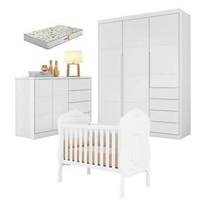 Quarto de Bebê Blenda com Berço Americano Realeza Branco Acetinado com Colchão Gazin - Phoenix Baby