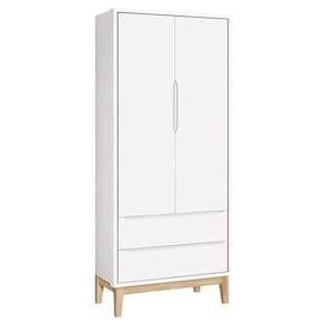 Guarda Roupa Infantil New Classic 2 Portas Branco com Pés Madeira Natural ? Reller