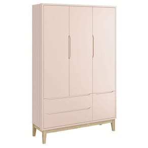 Guarda Roupa Infantil New Classic 3 Portas Rosa com Pés Madeira Natural - Reller