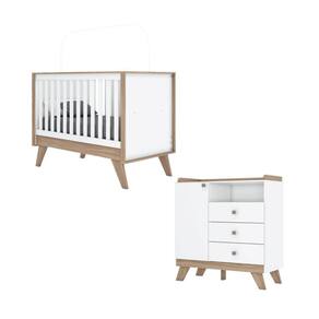 Quarto de Bebê com Berço 3 em 1 e Cômoda 3 Gavetas 1 Porta Retrô Theo Espresso Móveis Branco/Jequitibá HP. Este lindo Quarto de Bebê completo Retrô Theo reúne conforto e qualidade, projetado para ter durabilidade por muitos anos. O Berço 3 em 1 é fabricado com materiais de altíssima qualidade, pintura UV e moldura superior com acabamento arredondado, detalhes garantem um visual retrô, suas grades são fixas com pintura laqueada e bordas suavizadas para evitar acidentes, o lastro possui 2 regulagens de altura. Berço é 3 em 1, podendo ser utilizado como Berço-Cama e Mini cama. A Cômoda possui design elegante, com 3 gavetas e 1 porta e 1 prateleira e 1 nicho, espaço perfeito para organização desde roupas até acessórios de seu bebê. As corrediças telescópicas, acabamento em pintura UV e detalhes como puxadores em madeira com pintura garantem a beleza e sofisticação que o quarto do seu bebê merece. Ean: 7909903343364