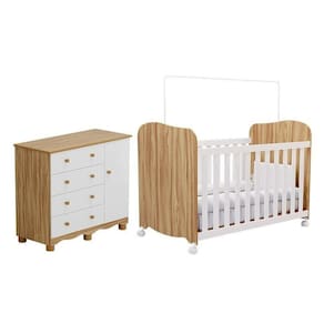 Quarto de Bebê com Berço Americano e Cômoda 1 Porta 4 Gavetas 100% Mdf Mimo Espresso Móveis Branco Brilho/Amêndoa