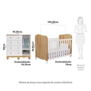 Berço: 98,60 x 132,40 x 76 (AxLxP - cm)