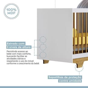 1x Berço Mini Cama 100% MDF com Colchão Flocos Branco/Madeirado Ypê Largura: 132.4 Altura: 81 Peso: 23.9 Profundidade: 67 Necessita Montagem: Sim