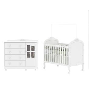 Um ambiente encantador e delicado, transmitindo tranquilidade e conforto para todos. Produtos fabricados com linhas suaves em estrutura 100% MDF e acabamento em Pintura UV atóxica.. As gavetas possuem corrediças telescópicas para facilitar o deslize das gavetas e o espaço interno com prateleiras e cabideiro em alumínio, proporcionando armazenamento prático para roupas e itens essênciais. A porta da cômoda é em PETG Cristal/Acrílico permitindo a visualização do seu interior. O berço é um charme com suas bordas curvas e rodízios, sendo 2 com travas. Além disso, é certificado pelo INMETRO e pode ser utilizado como Mini Cama ou Mini Sofá, acompanhando o crescimento do seu bebê. Ambiente composto por: 1 Cômoda 113 x 120,30 x 50,30 (AxLxP - cm) 1 Berço 120 x 135 x 78,30 (AxLxP - cm)