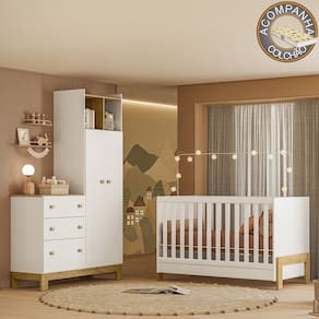 Características Estrutura em MDP Acabamento em pintura UV Acetinada Atóxica 03 Gavetas com Corrediças Metálicas 02 Portas com Puxadores de Plástico Cabideiro Metálico Sistema anti-tombamento Nichos Grades de proteção fixas feitas em MDF Estrado em MDF regulável em três alturas Pés em MDF de 25mm Acompanha suporte para mosquiteiro Berço 2 em 1 - Pode ser montado no modelo Mini Cama ACOMPANHA COLCHÃO 130 X 70 Suporta até 40 kg.