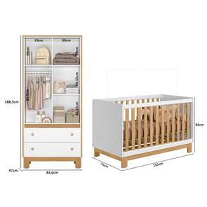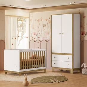 Quarto de Bebê com Berço Mini Cama Slim e Guarda Roupa Flora Branco Freijó Qmovi - Branco | Freijó