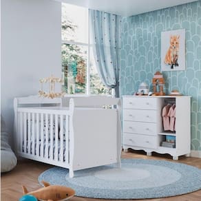 Qualidade, beleza, conforto e segurança para toda família na hora de montar o quartinho do(a) bebê. Essa é a proposta desenvolvida queridinha do momento. Produtos estrurados em 100% MDF e com acabamento em pintura UV atóxica. O berço possui padrão de colchão americano, estrado com altura regulável e todas as bordas arredondadas e laqueadas, que proporcionam mais segurança e uma sensação agradável ao toque, além de pode ser utilizado como mini cama ou mini sofá, prolongando seu uso. Já a cômoda possui gavetas que deslizam suavemente por corrediças telescópicas, facilitando a abertura, cabideiro metálico e prateleira que é ideal para acomodar as peças com organização da sua preferência. Também acompanha o produto, 2 opções de rodapés, um usinado (torneado) e outro reto, para que você escolha no momento da montagem qual se adequa ao estilo do ambiente. Aproveite para adquirir o seu agora!