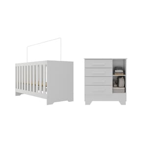 Quarto de Bebê com Cômoda 4 Gavetas 1 Porta Berço 3 em 1 Catavento Maya Rodial, combina funcionalidade e durabilidade com um design elegante, fabricada em MDP e MDF de alta qualidade, com acabamento em pintura UV fosca e detalhes retrô que conferem sofisticação ao quarto. As corrediças metálicas garantem suavidade no uso, enquanto a embalagem protege o produto durante o transporte, assegurando sua integridade. Já o Berço Maya 3 em 1 une segurança, funcionalidade e modernidade, transformando-se em mini-cama e sofá para acompanhar o crescimento do bebê. Com acabamento resistente, bordas seguras e montagem fácil, é uma escolha versátil e estilosa para quartos infantis.