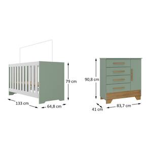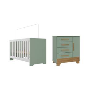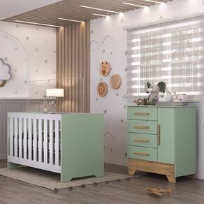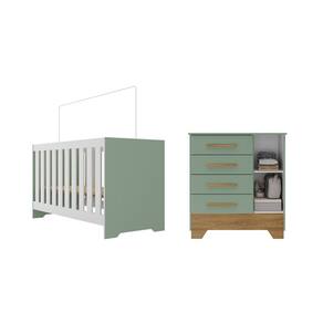 Quarto de Bebê com Cômoda 4 Gavetas 1 Porta e Berço 3 em 1 Catavento Maya Rodial - Verde