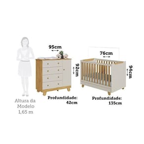Já a cômoda possui gavetas que deslizam suavemente por corrediças telescópicas, cabideiro metálico e prateleira. Acompanha Colchão: Não Altura do Conjunto: 94 cm Ambiente: null Ambiente Principal: Quarto de Bebê Cor: Amêndoa/Off White Estrado com Regulagem de Altura: Sim Informação Complementar: 1x Cômoda Infantil 1 Porta 4 Gavetas 100% Mdf 95cm Levy Amêndoa/Off-White Largura: 95 cm Altura: 92 cm Peso: 32,3 kg Profundidade: 42 cm Necessita Montagem: Sim