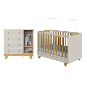 1x Berço Minicama 4 em 1 Americano 100% Mdf Levy OFF-WHITE/AMÊNDOA Largura: 76 cm Altura: 94 cm Peso: 33,59 kg Profundidade: 135 cm Necessita Montagem: Sim