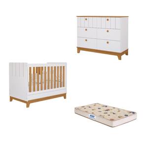 Quarto de Bebe com Comoda Berco e Colchao Liza Permobili Encante-se com a versatilidade e o charme do Berco Mini Cama Liza. Seu estrado ajustavel em 2 alturas e as 2 grades fixas proporcionam conforto e protecao para o sono do seu pequeno. E tem mais: ele se transforma facilmente em uma mini cama, acompanhando o crescimento do seu filho e prolongando sua utilidade. Crie um ambiente seguro e aconchegante para seu filho com o Berco Mini Cama Liza. A Comoda Infantil 6 Gavetas com Pes 100 MDF Liza Permobili e a solucao ideal para manter o quarto do seu pequeno sempre organizado. Suas 6 gavetas, equipadas com corredicas telescopicas, oferecem amplo espaco para armazenar roupas, brinquedos e acessorios, garantindo que tudo esteja sempre ao seu alcance. Com capacidade para suportar ate 3 kg por gaveta, a Comoda de Bebe Liza e perfeita para acompanhar o crescimento do seu filho com praticidade e seguranca. O Colchao Infantil Supreme Gazin possui revestimento em tecido plano que diminui o acumulo de poeira e materiais organicos, facilitando tambem na hora da higienizacao