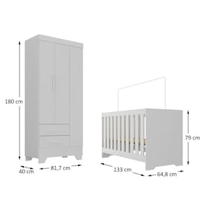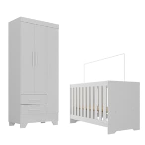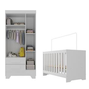 Quarto de Bebê com Guarda Roupa 3 Portas 2 Gavetas Berço 3 em 1 Catavento Maya Rodial - Branco