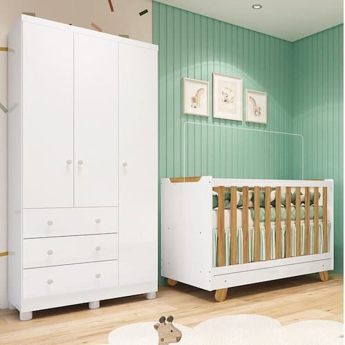 Crie um ambiente encantador e funcional com este quarto de bebê completo 100% MDF, desenvolvido para oferecer segurança, conforto e estilo. O berço certificado pelo INMETRO possui regulagem de altura e pode ser transformado em minicama, ou minisofá, ou escrivaninha, acompanhando o crescimento do bebê. O guarda-roupa possui corrediças telescópicas que garantem abertura suave e durabilidade nas gavetas e interno com 1 cabideiro metálico para maximizar a organização da sua rotina. Com design clássico moderno e acabamento delicado, o conjunto traz um toque de leveza e elegância ao espaço infantil.