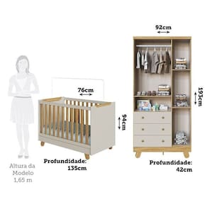 Já o guarda roupas possui gavetas que deslizam suavemente por corrediças telescópicas, cabideiro metálico e prateleiras. Acompanha Colchão: Não Altura do Conjunto: 193 cm Ambiente Principal: Quarto de Bebê codigo_ean: 7900288239747 Cor: Amêndoa/Off White Cor do Produto: Amêndoa/Off White Estrado com Regulagem de Altura: Sim Informação Complementar: 1x Berço Minicama 4 em 1 Americano 100% Mdf Levy OFF-WHITE/AMÊNDOA Largura: 76 cm Altura: 94 cm Peso: 33,59 kg Profundidade: 135 cm Necessita Montagem: Sim