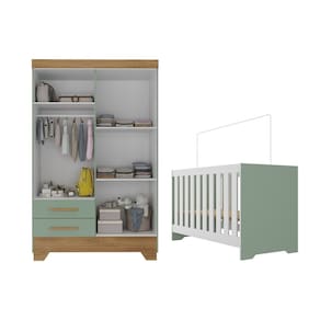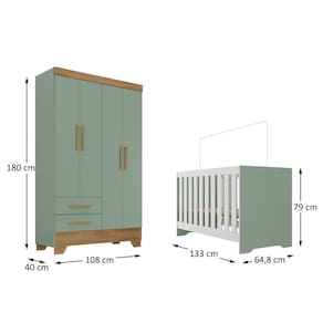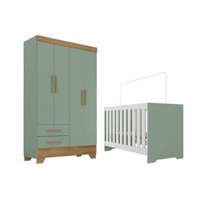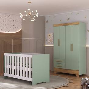 Quarto de Bebê com Guarda Roupa 4 Portas 2 Gavetas e Berço 3 em 1 Catavento Maya Rodial, une estilo retrô e funcionalidade moderna, com estrutura robusta em MDP e MDF, acabamento em pintura UV fosca e detalhes elegantes como puxadores combinando e pés vintage. Oferece organização eficiente com excelente distribuição interna e cabideiro de madeira revestida, além de embalagem segura que protege o produto durante o transporte. Já o Berço Maya 3 em 1, fabricado com materiais de alta qualidade e acabamento em BP fosco, combina segurança e versatilidade, transformando-se em mini-cama e sofá. Com estrado ajustável, bordas protegidas e montagem funcional, é ideal para acompanhar o crescimento do bebê com estilo.