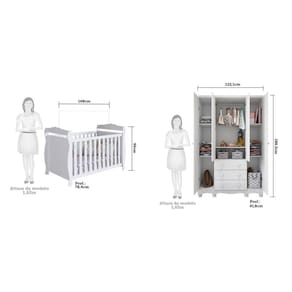 Berço: 99 x 148 x 78,4 (AxLxP - cm) Acabamento da Gaveta: Pintura UV Acabamento da Porta: Pintura UV Ambiente Principal: Quarto de Bebê Certificado: 013209/2022 codigo_ean: 7908709400523 Cor: Branco Brilho Cor do Produto: Branco Brilho Cor Interna: Branco Escala de Brilho: Brilhante Escala de Brilho da Gaveta: Brilhante Escala de Brilho da Porta: Brilhante Escala de Brilho da Prateleira: Semi-Brilho Estampado: Não Estrado com Regulagem de Altura: Sim Estrado Regulável em Quantas Posições: 02 Informações Complementares: Material do Estrado: MDF e laminado de madeira Linha ou Coleção: Nina Manual de Montagem e Instalação: https://product-hub-prd.madeiramadeira.com.br/876709/documents/ef47c611-ff21-4806-a570-8f4eac8fcbf054658711brancobrilhomanual.pdf Material da Gaveta: MDF Material da Porta: MDF Material da Prateleira: MDF Material do Estrado: MDF Material do Fundo: HDF Material do Puxador da Gaveta: Plástico Material do Puxador da Porta: Plástico Medida de Cada Item: Guarda Roupa: 188,5 x 122,1 x 41,5| Berço: 99 x 148 x 78,4 (AxLxP - cm) Permite a Utilização de Cama Auxiliar: Não Peso: Guarda Roupa: 68,46kg | Berço: 32,4 kg Peso de Cada Item: Guarda Roupa: 68,46kg | Berço: 32,4 kg Pintura Atóxica: Sim Possui Certificado: Sim Possui Gavetas: Sim Possui Portas: Sim Possui Prateleiras: Sim Possui Rodízio: Não Quantidade de Gavetas: 03 Quantidade de Portas: 04 Quantidade de Prateleiras: 05 Suporta Até (kg): 20.0000 Tipo de Corrediça da Gaveta: Metálica Telescópica Tipo de Dobradiça/Corrediça da Porta: Metálica Tipo de Guarda-Roupa: Bebê Tipo de Porta: Bater Tipo de Puxador da Gaveta: Externo Tipo de Puxador da Porta: Externo Ean: 7908709400523