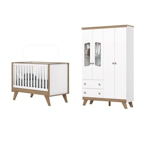 Quarto de Bebê com Guarda Roupa 4 Portas e Berço 3 em 1 Lola Henn, o Berço é certificado pelo Inmetro e projetado para crescer com a criança, com montagem reversível e estrutura em MDF. Seu design suave e harmonioso traz amplitude ao quarto. Também destaca o Guarda Roupa Infantil 4 Portas 2 Gavetas, espaçoso e feito em MDP, com gavetas de deslize suave e otimização de espaço. O cabideiro em alumínio e as portas em vidro adicionam sofisticação, enquanto os pés de MDP completam o elegante design.