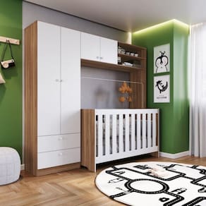 Conjunto Quarto Infantil Berço 3 em 1 com Colchão e Guarda Roupas 4 Portas e 2 Gavetas Nogal Manchester com Branco Linha Aconchego Completa Móveis. A Linha Aconchego da Completa Móveis foi pensada e confeccionada com o intuito de gerar e deixar o ambiente versátil, prático e elegante. Com características e produtos que a destacam, ideal para seu bebê, desde o nascimento até que ele esteja crescidinho! Todos os berços possuem certificação do INMETRO. Acompanha Colchão: Sim Acompanha Manual de Instalação: Sim Ambiente: null Ambiente Principal: Quarto de Bebê codigo_ean: 7908506275348 Complexidade da Montagem: Média: pode ser montado por mais de uma pessoa e/ou necessite de maior conhecimento para montagem Cor: Nogal Manchester/Branco Cor do Produto: Nogal Manchester/Branco Estrado com Regulagem de Altura: Sim Informação Complementar: 1x Berço 3 em 1 Branco 133x64,8cm com Colchão Aconchego Nogal com Branco Largura: 133 Altura: 79,09999999999999 Peso: 25,55 Profundidade: 64,8 Necessita Montagem: Sim