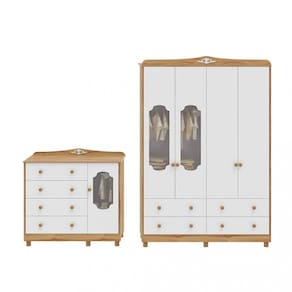 O Quarto de Beb? com Guarda Roupa e C?moda 100 MDF El? New Noah M?veis Peroba ? um ambiente encantador e delicado, transmitindo tranquilidade e conforto para todos. Produtos fabricados com linhas suaves com estrutura em 100 MDF e acabamento em Pintura UV at?xica ? o destaque deste ambiente.