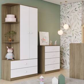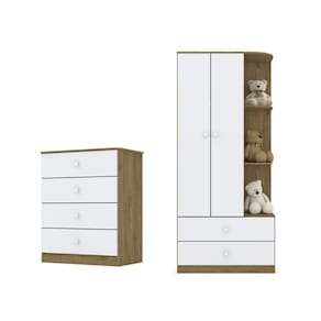 Quarto de Bebê com Guarda Roupa e Cômoda Labirinto Henn, combina sofisticação e modernidade com qualidade e durabilidade, sendo ideal para o quarto do bebê. Produzida em MDP, possui 2 gavetas com corrediças metálicas para um deslize suave, acabamento em pintura UV e amplo espaço interno para organizar roupas. Suas prateleiras externas permitem uma decoração encantadora, tornando o ambiente mais funcional e confortável para o bebê.
