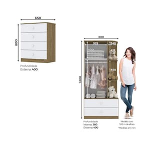 Dimensões do Guarda Roupa: Altura: 180 cm Largura: 80cm Profundidade: 40 cm Peso: 38 kg