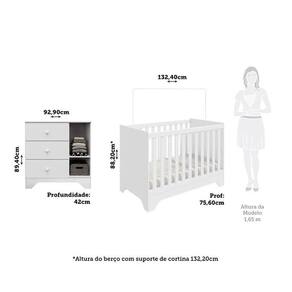 Com design retrô, inspirado nas décadas passadas, combinamos a elegância clássica com praticidade moderna, proporcionando um espaço encantador para o seu pequeno crescer e sonhar! São produtos desenvolvidos em 100% MDF, acabamento em pintura UV atóxica e bordas arredondadas, oferecendo mais segurança para toda família. As gavetas possuem corrediças telescópicas que garantem o deslize suave e silencioso. O berço é certificado peço INMETRO e permite o uso como minicama ou minisofá. Transforme o quarto do seu bebê com produtos elegantes, atemporais, com a qualidade e o design que você procura! Ambiente comporto por: - 1 Cômoda 1 Porta com Janela 89,40 x 92,90 x 42 (A x L x P - cm) - 1 Berço Mini Cama 88,20 x 132,4 x 75,60 (A x L x P - cm)