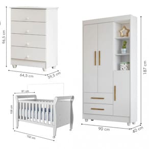 Dimensões do Berço: Altura: 106 cm Largura: 81cm Profundidade: 152 cm