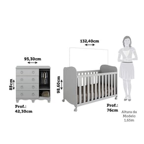 O Quarto Lana é perfeito para o seu bebê, oferecendo requinte e praticidade. Com um berço padrão americano certificado pelo INMETRO, uma cômoda com porta janelada em PETG Cristal/Acrílico para facilitar a organização, este conjunto é ideal para pais que valorizam a segurança e o conforto. Feitos em 100% MDF e acabamento em Pintura UV atóxica, todos os detalhes foram pensados para criar um ambiente seguro e acolhedor para o seu filho. Prepare-se para momentos especiais com seu bebê no Quarto Lana. (Obs: Colchão não incluso e o berço não pode ser transformado em mini-cama).