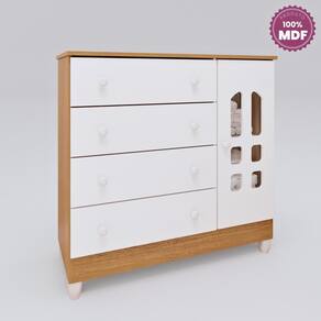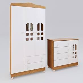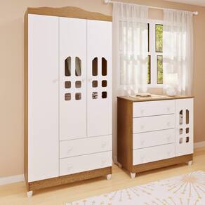 O dormitório perfeito para combinar com a decoração que você escolheu para acolher o seu baby. O guarda-roupa em que você tem ainda mais espaço para acomodar os pertences do seu bebê, de forma que as roupas não fiquem amassadas ou apertadas. Com cabideiro, prateleira e gavetas, as mamães podem organizar tudo de forma prática e funcional. Peça fabricada em 100% MDF de alta resistência mecânica, a cômoda é uma peça chave na organização de objetos, roupas e acessórios do bebê. O móvel tem um sistema de trava anti-tombamento e corrediça telescópicas nas gavetas. Este produto se encontra disponível nas cores Branco e Branco com Bétula.