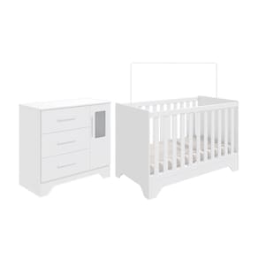 Caracter?sticas da C?moda: Estrutura 100 MDF Acabamento pintura UV at?xica 1 Porta 3 Gavetas Com janela Caracter?sticas do Ber?o: Estrutura: 100 MDF Acabamento: Pintura UV At?xica Espessuras: Estrutura 12mm, Barra das Grades 25mm Tipo de Estrado: Regul?vel em 2 posi??es -22 e 54 - cm- Op??es de montagem: Pode montar como ber?o, minicama ou minissof? Tamanho do Colch?o Indicado -LxC - cm-: 70 x 130 -Infantil Americano- Certificado INMETRO: Ber?o Popy Retr? 008091/2021 Suporta at?: 40kg