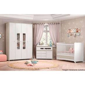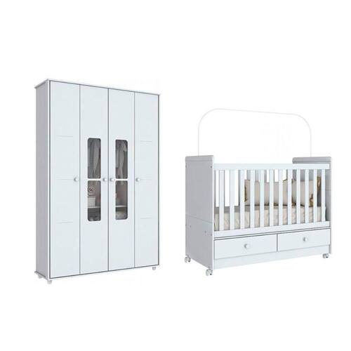Quarto Infantil Completo Aquarela 2 Peças (1 Guarda Roupa + 1 Berço) QI03 Branco - Henn