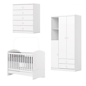- Acompanha: 1 Cômoda, 1 Guarda-Roupa, 1 Berço, Kit Ferragens, Manual de Montagem