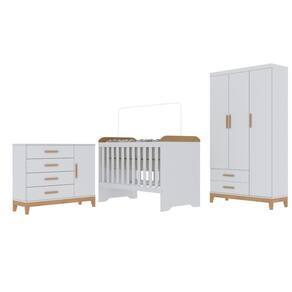 100% MDFUm dormitório no estilo retrô para deixar o ambiente ainda mais encantador. Produzidos em 100% MDF de alta resistência mecânica e sua base e pés em madeira maciça. Esses móveis são todos rigidamente testados em laboratório e o Berço Americano certificados pelo INMETRO. O berço multifuncional também serve como mini-cama e mini-sofá, o guarda-roupa e a cômoda contam com corrediças telescópicas em suas gavetas, trazendo mais e leveza às gavetas. Disponível na cor Branca com Bétula.