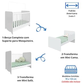 Dimensões do berço montado: Altura 97,4 cm x Largura 132,4 cm x Profundidade: 76 cm