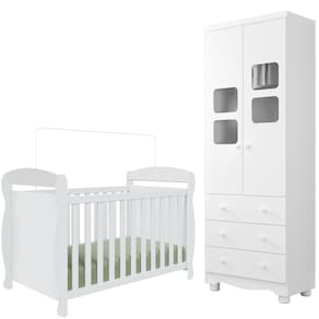 O Quarto de Bebê Completo com Berço Americano Marquesa e Guarda Roupa Uli 2 Portas da Móveis Peroba são perfeitos para você que busca uma linda decoração, sem esquecer da praticidade, segurança, aconchego do seu Bebê.