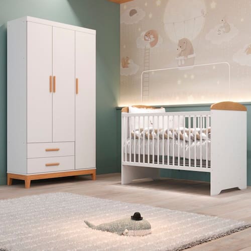 Combina perfeitamente com a Cômoda e Berço da linha Hellen Acompanha Colchão: Sim Acompanha Manual de Instalação: Sim Altura do Conjunto: 205 cm Ambiente Principal: Quarto de Bebê Certificado: 012220/2023 Certificado INMETRO (código): 012220/2023 codigo_ean: 7900288249814 Complexidade da Montagem: Baixa: pode ser montado por uma pessoa sozinha Cor: Branco/Bétula Cor do Produto: Branco/Betula Cor Interna: Branco/Betula Escala de Brilho: Fosco Formato da Janela da Porta: Retângulo Largura do Conjunto: 119 cm Linha ou Coleção: Hellen / Eloa Manual de Montagem e Instalação: https://cdn2.madeiramadeira.com.br/atributo/carolina-baby/3257924-640-17594371892215.pdf Marca: Carolina Baby Material da Gaveta: MDF Material da Porta: MDF Material da Prateleira: MDF Material do Estrado: MDF Material do Fundo: MDF Material Principal: MDF Medida de Cada Item: Berço 133x76x100cm, Roupeiro 110x44x205cm modular: Não Necessita Montagem: Sim Origem do Produto: Nacional Peso: Guarda Roupa: 74,2Kg, Berço: 34,2Kg Peso de Cada Item: Guarda Roupa: 74,2Kg, Berço: 34,2Kg Porta Janelada: Sim Possui Certificado: Sim Possui Espelhos: Não Possui Gavetas: Sim Possui Portas: Sim Possui Prateleiras: Sim Possui Rodízio: Sim Profundidade do Conjunto: 243 cm Quantidade de Gavetas: 02 Quantidade de Prateleiras: 04 Recomendações de Uso, Manutenção e Limpeza: Limpar com pano seco Sistema de Montagem: Parafuso Suporta Até (kg): Berço: 50kg ,Cômoda: 18 kg. Roupeiro 18Kg Tamanho do Colchão (L x C): 130x70x12 Tipo de Corrediça da Gaveta: Metálica Telescópica Tipo de Dobradiça/Corrediça da Porta: Metálica
