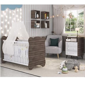 Quarto de Bebê Completo com 1 Berço 1 Comoda Panda Móveis Percasa Carvalho/Branco. O Quarto de Bebê Panda é composto por um lindo berço na cor carvalho e uma cômoda retro carvalho com branco. Ideal para ser utilizado em um quarto mais compacto. A cômoda possui três gavetas com corrediças telescópicas e seus pés são em madeira.