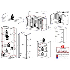 Conteúdo da Embalagem: 1 (um) Berço 1 (um) Colchão 1 (um) Guarda-Roupas 1 (uma) Cômoda Kit Ferragem Manual de Montagem
