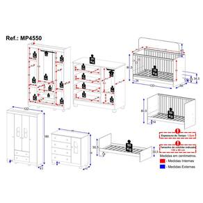 Dimensões do Produto Montado: Berço - Altura: 80,5cm | Largura: 133cm | Profundidade: 66cm Guarda-roupa - Altura: 189cm | Largura: 122cm | Profundidade: 41cm Cômoda - Altura: 88cm | Largura: 95cm | Profundidade: 42cm *Você pode consultar as medidas detalhadas na imagem técnica do produto.