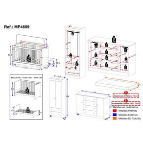 Conteúdo da Embalagem: 1 (um) Berço 1 (um) Colchão 1 (um) Guarda-roupa 1 (uma) Cômoda Manual de Montagem Kit Ferragem