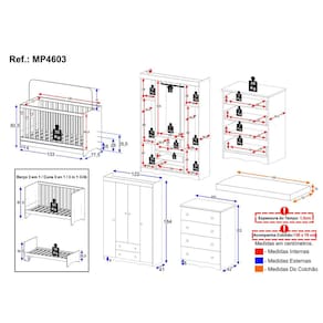 Conteúdo da Embalagem: 1 (um) Berço 1 (um) Colchão 1 (um) Guarda-roupa 1 (uma) Cômoda Manual de Montagem Kit Ferragem