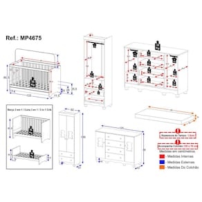 Conteúdo da Embalagem: 1 (um) Berço 1 (um) Colchão 1 (um) Guarda-roupa 1 (uma) Cômoda Manual de Montagem Kit Ferragem