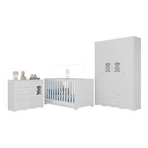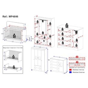 Conteúdo da Embalagem: 1 (um) Berço 1 (um) Guarda-roupa 1 (uma) Cômoda Manual de Montagem Kit Ferragem