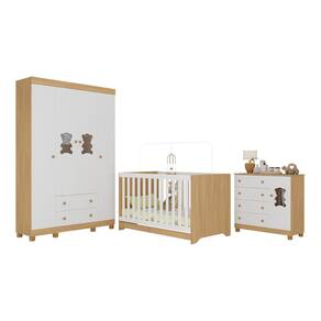 Diferenciais: - 3 anos de garantia contra defeitos de fabricação e material. - Conjunto produzido em madeira de reflorestamento (MDP 12/15mm) com acabamento acetinado (cerca de 20% de brilho): sustentabilidade e durabilidade. - Berço 3 em 1 que se transforma em sofá e minicama, acompanhando o crescimento do bebê. - Lastro em madeira com 3 regulagens de altura e suporte para mosquiteiro para noites mais tranquilas e protegidas. - Berço certificado pelo INMETRO (Selo n 0000085/2018). - Padrão americano (tamanho do colchão indicado: 130x70cm). Colchão não incluso. - Grade Soft (PVC): ecologicamente correta, com matéria-prima livre de metais pesados, atóxica e com proteção antiamarelamento. - Guarda-roupa com 4 portas e 2 gavetas: amplo espaço para organizar roupinhas e acessórios. - Cômoda com 1 porta e 4 gavetas. - Portas e gavetas produzidas em MDF. - Detalhes de vidro incolor temperado 3mm nas portas: toque charmoso que permite visualizar o interior dos móveis. - Corrediças telescópicas: abertura total e silenciosa das gavetas. - Cabideiro em alumínio: permite acomodar roupas longas e curtas para que não amassem. - Puxadores em ABS delicados e práticos. - Pés em polipropileno e rodapés: visual elegante e estabilidade para o guarda-roupa e a cômoda. - Sistema antitombamento no guarda-roupa e cômoda: proporciona segurança para o bebê e tranquilidade aos pais.